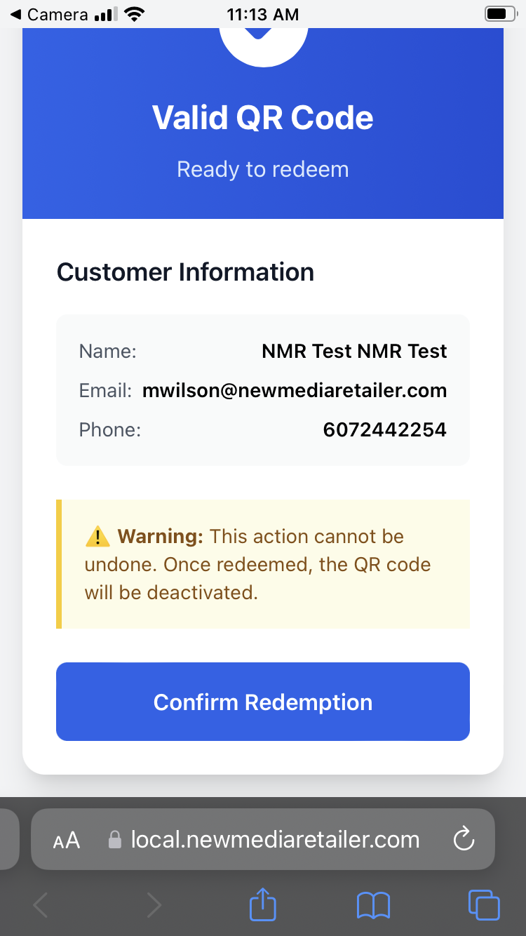 On the phone or tablet, the cashier will click 'confirm redemption'
